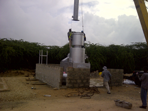 Fueled by Heavy OIL Burner.waste disposal incinerator, capable of handling both wet and dry garbage.. Which include house hold wastes and dry leaves.